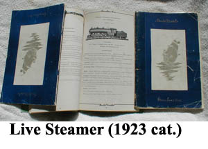 In 1922/23, I'm aware of two catalogues having been issued: A 9” x 6” 136-page catalogue, with 15 pages of trains, and a "mini" 6” x 3-1/2” 46-page catalogue with 8 pages of trains. Neither catalogue listed the 4-4-0 2100 loco, but they did list a #1 gauge live steamer. Graham Claytor had a Boucher live steamer and he thought it was made by Bassett-Lowke.