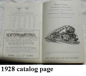 1929 is very distinctive, being 6 x 9 and with full color covers. Although it has only 32 pages, 9 are for trains. It has a full color two page spread showing the new design of passenger cars. These are more like the Blue Comet cars than the Voltamp coaches. It also lists the 2500 loco as having two motors.