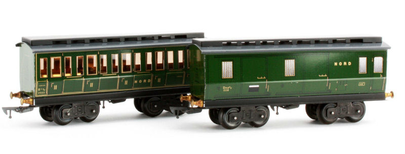 NORD 2nd Class and Baggage wagon. The carriages are 22.5 cm in length.Note
