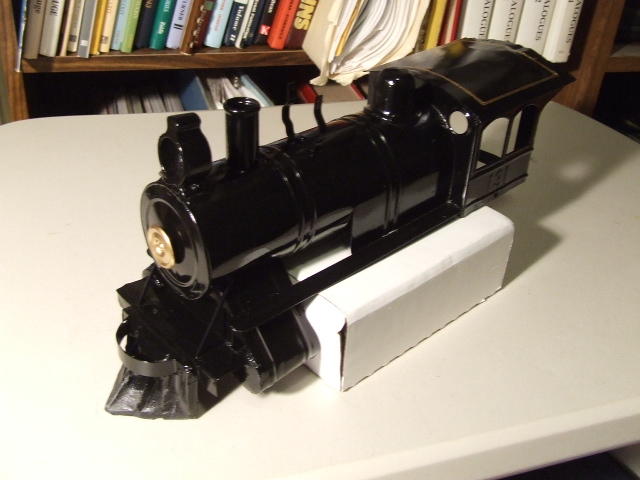 Wonderful old toy trains are still coming out of attics and basements a century after they were manufactured. Recently I was fortunate in acquiring a Carlisle & Finch #4 locomotive that was in need of a lot of TLC. While the loco and tender were complete, the two big problems it had were the poor complete over paint and the wrong trim accent color, and the locomotive's broken wooden frame.