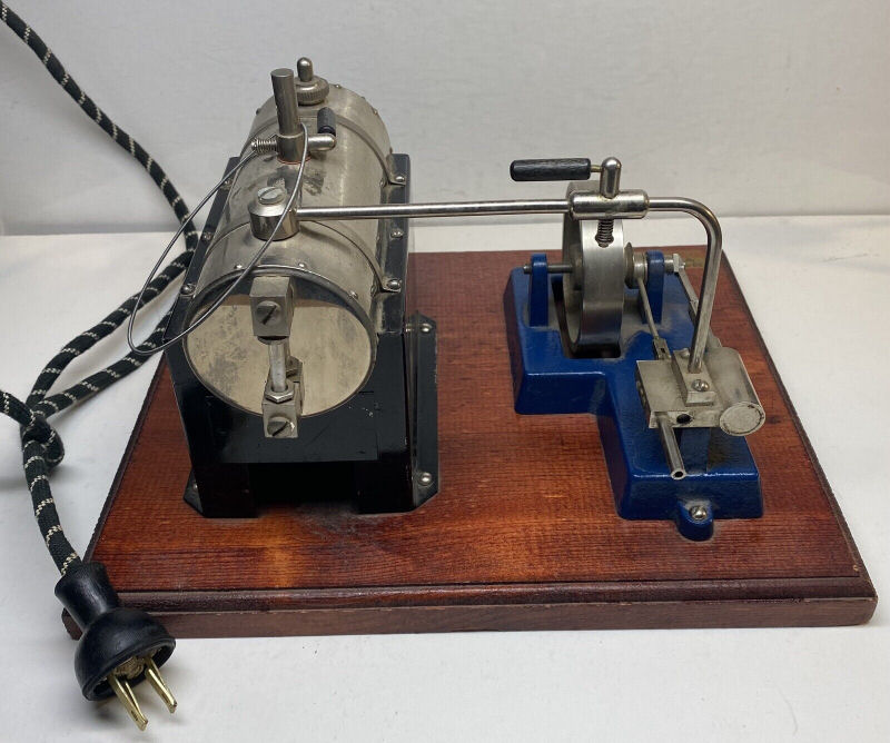 Version 2. 1937 - '38/'39 - small cylinder, solid wood base, rivets, Robins egg blue, no reverse gear, cloth cord & bakelite plug