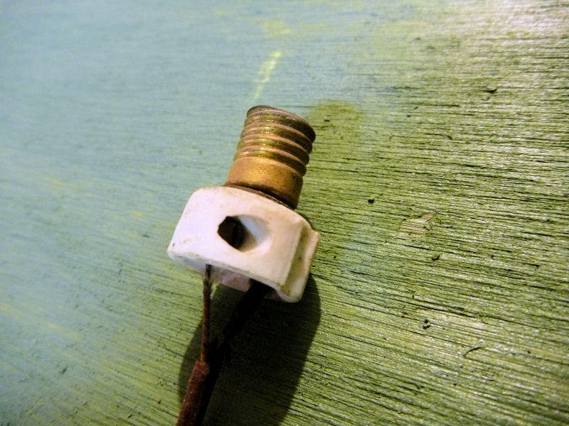 I came up with suitable parts from my plumbing and electrical junk boxes for the housing and I used a spare vintage ceramic light socket to complete the assembly.