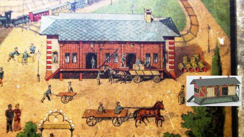 Top Right: BAUER replica Halle (Märklin #2067/0, produced from 1907 to 1912,) replica post office ( Märklin # 2130, produced from 1900 to 1902, accessories mostly from Bauer workshop)