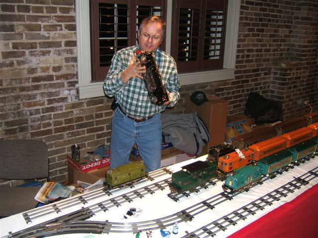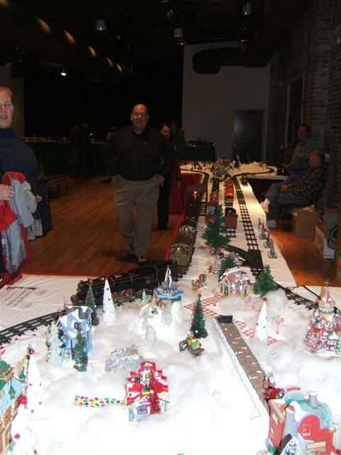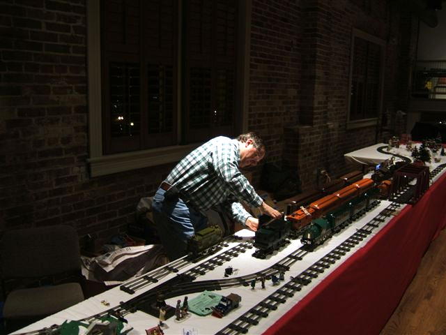 Last year was our first year. I designed the layout, such as it was, and forgot that standard gauge doesn't like reverse curves. We used regular radius curves and only the short cars would negotiate the dog bone's reverses. This year we used wide radius curves and extra tables. The 402s loved the room to run.