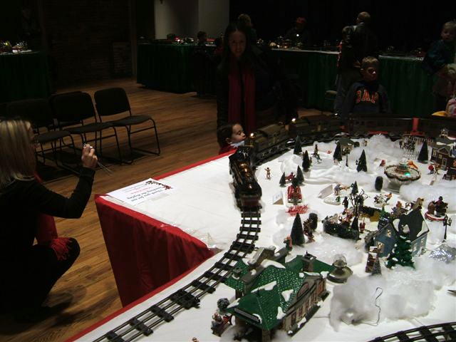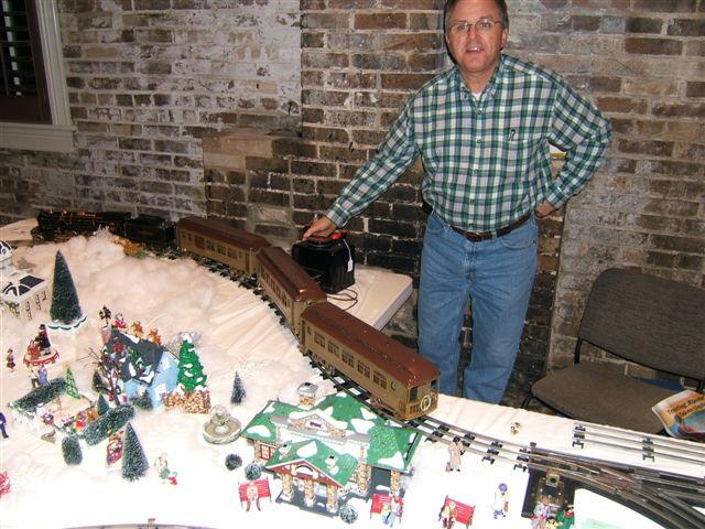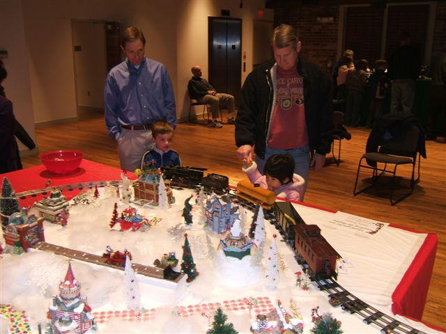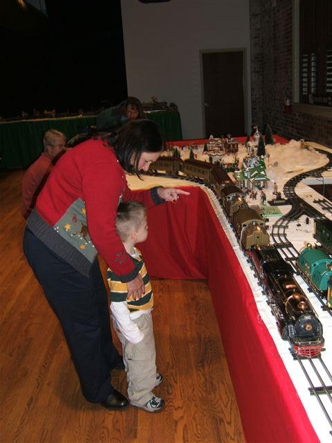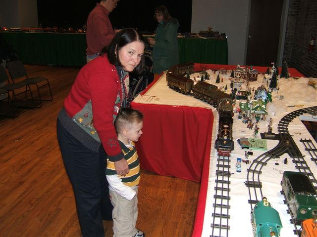 Happiness is a standard gauge layout and some kids! Engineers include: Allen Crotts, Dan Danielson and Bill Bushmeier. Note the presence of Stomper (green homemade locomotive.) She howled and howled as she circled the layout to the delight of the kids.