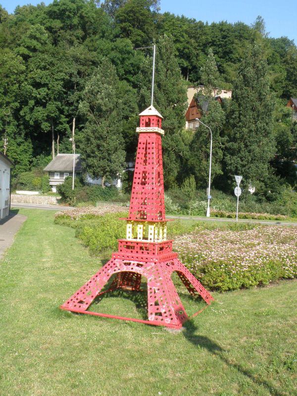Visitors to Police nad Metuji are welcomed a Merkur statue of the Eiffel tower.