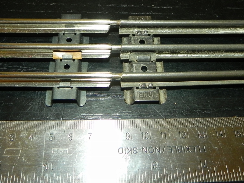 Merkur (left) and Lionel (right) tubular track.