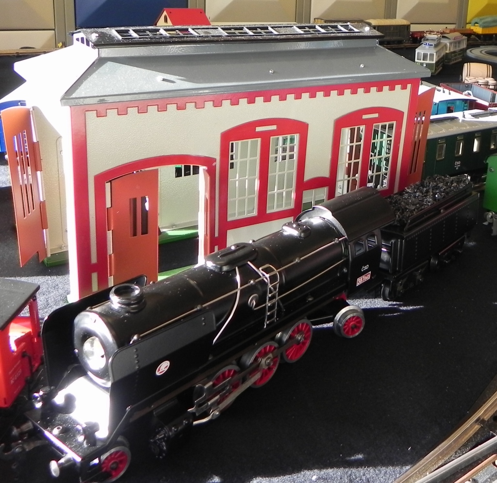 The assortment of Merkur tin-plate train models has expanded largely over the last years. Recently they added a turntable, grade crossings, new buildings, lanterns, high voltage power lines, etc. These items are of a robust quality metal work, readily available and relatively affordable. Merkur merges the heritage of a tinplate train manufacturer with modern technology (servo-controlled switches, train sounds) and modern themes (container cars, apartment buildings, power lines) while simultaneously maintaining their own high quality standards. Merkur stands out in in comparison to other modern tinplate manufacturers in robustness and value-for-money.