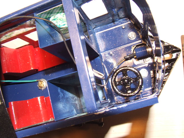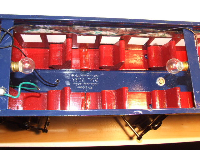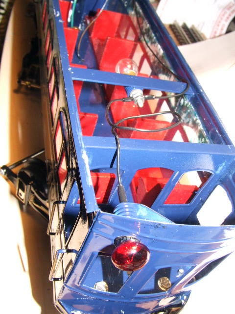 Nice wiring and ample illumination including two interior lamps, a headlight, and a rear red danger light. Note the hefty soldered-on brass hand rails on either side of the doors. There's no worry about these pulling out easily!