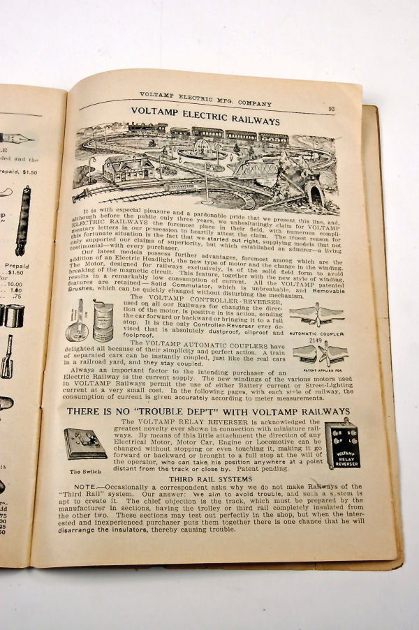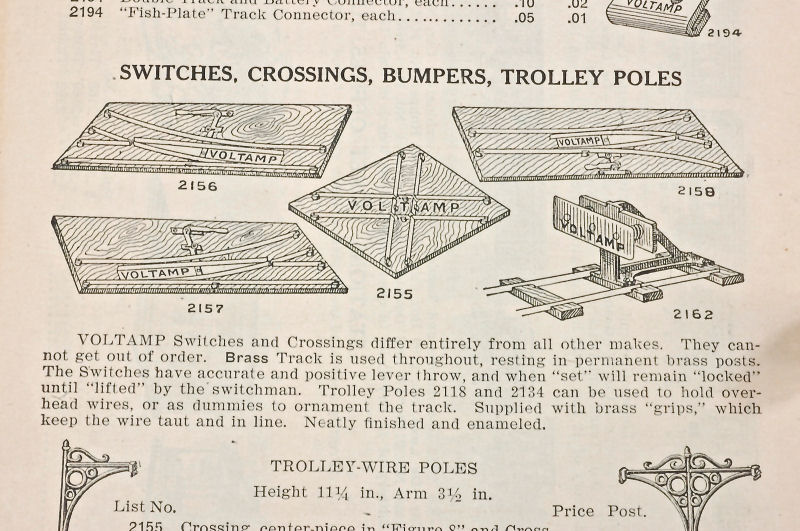 When I was using Jim Kelly-Evans' Voltamp book to review my 1910 Catalog, there on page 108, I discovered very accurate drawings of my switches. The only difference is that those in the catalog are labeled ‘Voltamp’ on the brass plate with the moving rails.