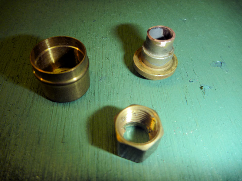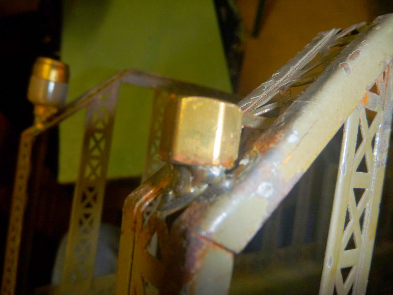 Each lamp is mounted on it's own minature socket with a ceramic base. There is also a ceramic insulator that screws into the outside of the brass exterior lamp housing. One problem with existing examples of these illuminated Dorfan bridges is that these small ceramic insulators are missing from the light socket assemblies. This is really more of a cosmetic issue since the low voltage lamps do not generate that much heat. A bigger problem exists if one or more of the entire lamp assemblies is missing. That was the case with the bridge that I acquired as it was missing one complete lamp assembly. Therefore, my fist task was to fashion a replacement lamp socket.