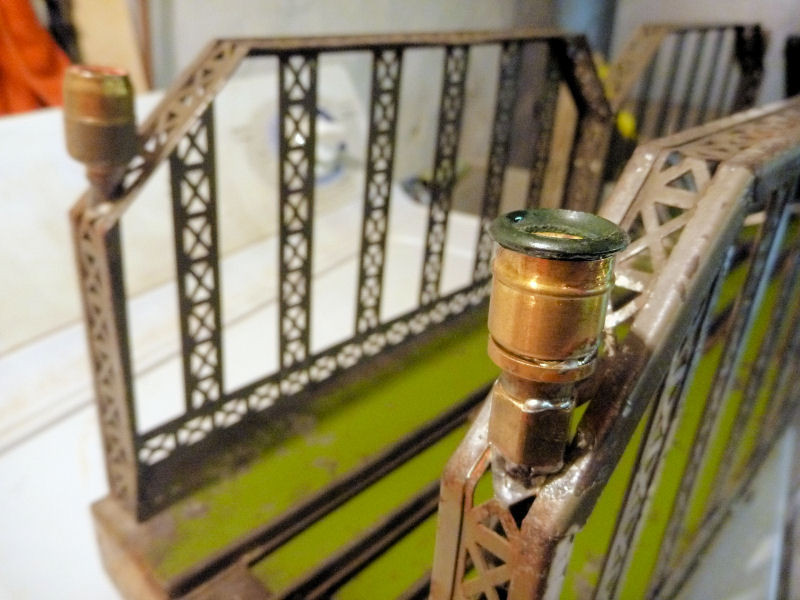 Electrically, the four lamps on posts at the corners of the bridge proper were