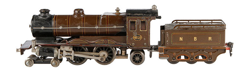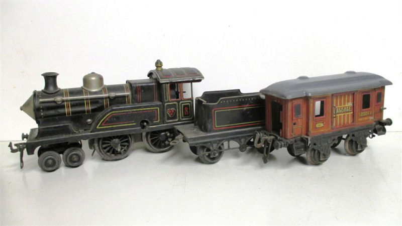 Several classic toy locomotives pulled Wolfgang’s trains when he was a young boy. Shown here is a Marklin CE 4020 live steam locomotive (which was not surprisingly considered dangerous and seldom used in the house and is therefore fairly well preserved), and a small two axle R 12900 Electric (that was given to Wolfgang’s grandson There were also a BING 2B locomotive with tender, BING No 170/191/0 (1909-1911) with a BING baggage car, No. 10392 (1912 to 1922) and a BING B-Locomotive No 11/62 (1925-1929).