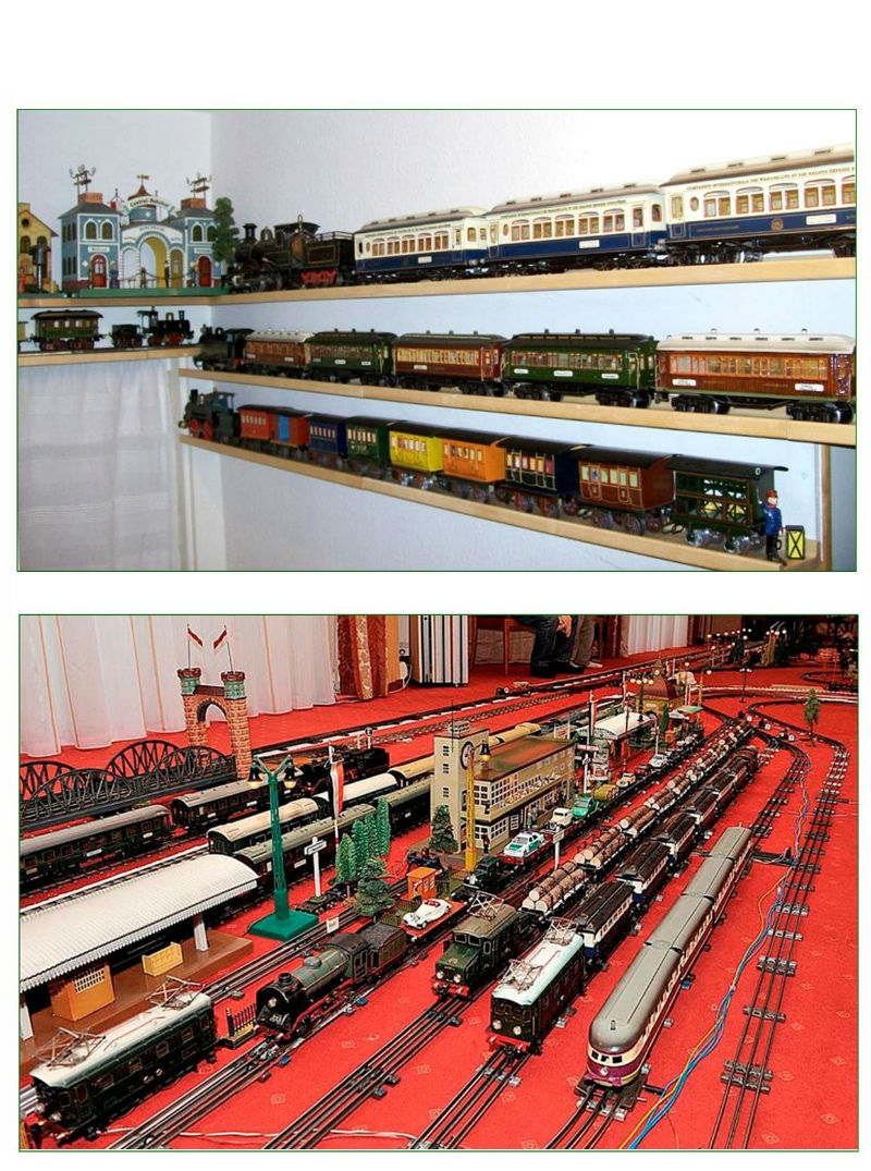 Bottom: various gauge 0 trains and accessories (platforms, stations,