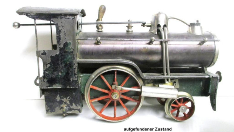 The alcohol fired locomotive now has a complete, functioning steam whistle. Restored she is an impressive machine, with the distinctive movement. The locomotive can move forward and in reverse. In the photo below a conductor made by the Bauers is a replica (Size: 8 cm tall)of a very old Kibri figure from our their workshop. The figure provides a good size comparison for the locomotive.