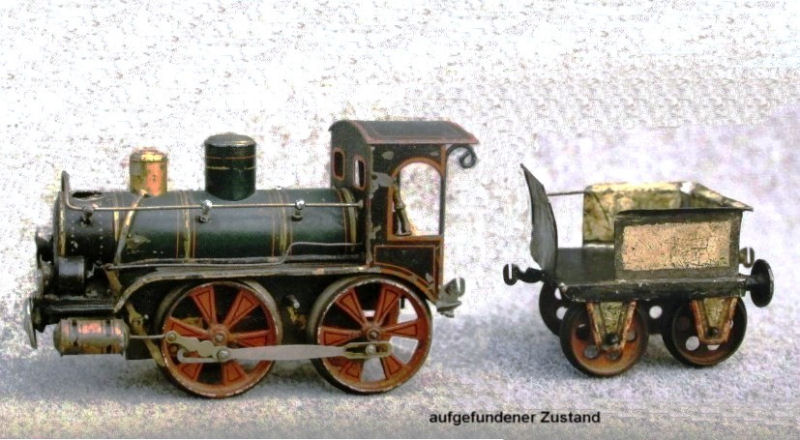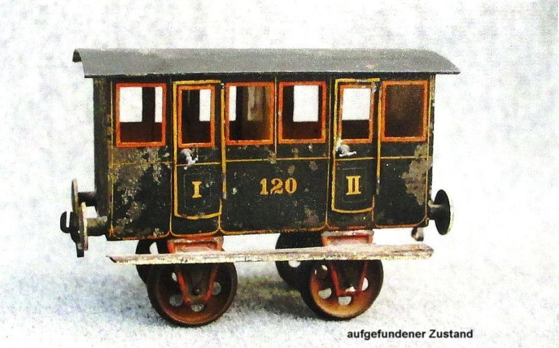 In addition to the restoration work on the locomotive and the two wagons, Herr Bauer made from scratch the beer wagon (1808/III) below for the train. This Gauge 3 train is a very rare item.